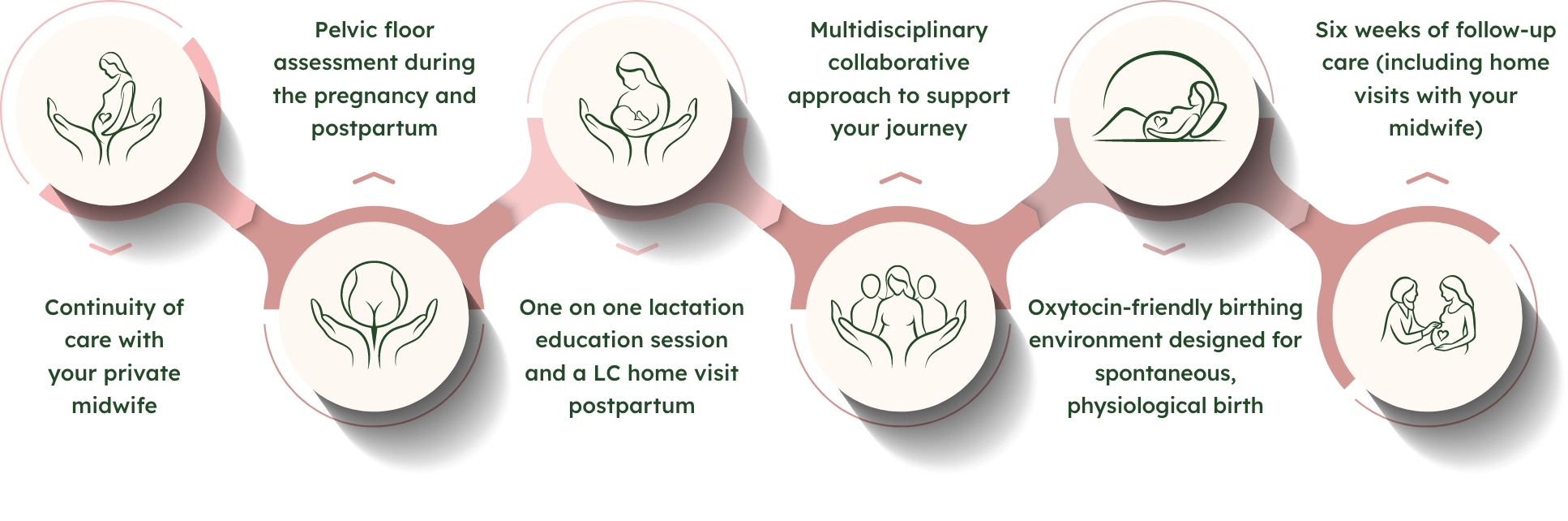 We have created a place to birth for families seeking a supportive, nurturing birth environment with the continuity of care by a private midwife. Surrounding you is a trusted team of professionals here to support your pregnancy, birth, and postpartum journey.